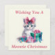 Carta con la tarjeta "Te deseo un Navidad de Meowie". Un bonito gatito generado por IA con regalos alrededor. Una hermosa adición a tu colección de Navidades Cat/Kitty este año.