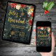 Una elegante y elegante carta de vacaciones o invitación con un fondo acuático en la noche arbolado enmarcado por ramos florales de época de poinsettia y pino con caligrafía dorada y una salpicadura de delicados copos de nieve. Esta tarjeta está en español y la misma en inglés está disponible en la colección. Cambie el texto de esta tarjeta para que sea una invitación para un evento de fiesta o de vacaciones.