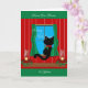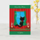 Esta linda tarjeta de Navidades del gato negro contiene un gato negro con un collar rojo y hojas grises sagradas sentadas en una ventana nevada esperando a que su familia regrese a casa para Navidades! Esta adorable tarjeta de Navidades Black Cat sería una manera cuidadosa de enviar sus deseos de vacaciones a sus seres queridos o a su amante favorito de los gatos este año!!