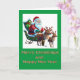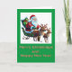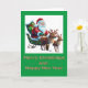 Santa conduce su trineo con una sonrisa. El saludo de color dorado (no Relieve metalizado) que se muestra a continuación dice "Feliz Navidad y Feliz Año Nuevo", en un contexto verde. Esta es una carta lúdica para todos. Para la familia, amigos, jefe, compañeros de trabajo, vecinos y cualquier persona en tu lista. Una tarjeta es mucho más agradable que un mensaje de texto. El interior se ha dejado en blanco para que pueda personalizar con la función fácil de usar de Zazzle para añadir su mensaje. Incluso puedes personalizar para hacer tu propia invitación a la cena de Navidades o a un Fiesta de Año Nuevo.