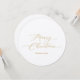Comparte tus saludos festivos con esta tarjeta de Navidades redondos que incluye un elegante guión dorado. La forma circular única y el diseño atemporal lo convierten en un conservador encantador para amigos, familiares o colegas, añadiendo calidez y elegancia a su temporada de vacaciones.