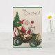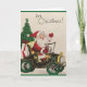 Tarjeta de felicitación de Navidades Vintage/Retro. Adorable Papá Noel entregando regalos a los Navidades en un Modelo T. ¡Son Navidades!