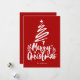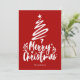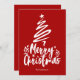 Feliz Navidad con un estilo decorativo de escritura tipo fuente con un contorno de un árbol de Navidad y estrella en diseño superior. Esta tarjeta de Navidades rojos está diseñada para que pueda cambiar el color del fondo, los gráficos y también introducir su nombre de familia.