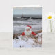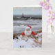 Este es Santa Claus escalando desde la playa cubierta de nieve en Roker en Sunderland.