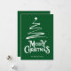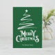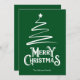 Feliz Navidad con un estilo decorativo de escritura tipo fuente con un contorno de un árbol de Navidad y estrella en diseño superior. Esta tarjeta de Navidades de color de fondo verde está diseñada para que pueda cambiar el color del fondo e introducir también el nombre de su familia.