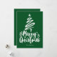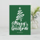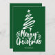 Feliz Navidad con un estilo decorativo de escritura tipo fuente con un contorno de un árbol de Navidad y estrella en diseño superior. Esta tarjeta de Navidades verdes está diseñada para que pueda cambiar el color del fondo, los gráficos y también introducir su nombre de familia.