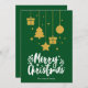 Green Merry Christmas en un lujoso guion decorativo con el diseño de iconos de Navidades colgantes blancos. Esta tarjeta de Navidades de color de fondo verde está diseñada para que pueda cambiar el color del fondo y también introducir su apellido o quitarlo si desea tener el diseño sin el texto. También puedes personalizar el color de las palabras "Feliz Navidad" si quieres.