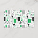 Tarjetas de visita electrónica (u otros profesionales de la electricidad) diseñadas con un patrón en el reverso con varios elementos y símbolos como bombillas, tomas, enchufes, espoletas y más, en verde, gris y negro. El lado frontal tiene un borde verde con su personalización profesional de contacto en verde, negro y gris sobre blanco. Son un diseño moderno de tarjetas de visita para electricistas certificados, artesanos profesionales u otros oficios que usan electricidad.