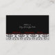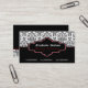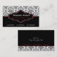 Tarjeta de presentación de damasco blanco rojo negro, con un patrón de damasco blanco y negro. La parte inferior es de color negro sólido. Una franja negra y otra roja separan las dos partes. Su empresa/nombre está escrito en una elegante etiqueta negra con un contorno blanco y rojo.