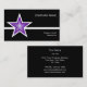 Diseño moderno con una estrella "brillante, brillante" morada y blanca sobre un fondo negro. Plantilla de tarjeta de visita con un diseño de personalizable para que pueda personalizar con su propio texto, imágenes e ideas. Tenga en cuenta que se trata de una imagen impresa creada con fotografías originales y técnicas digitales, que no brilla ni contiene chispas reales.