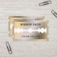 Estilo creativo inspirado en el negocio de la peluquería. El afeitado de Razor se ve en una textura metalizado falsa y brillante.