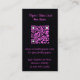 El diseño de tarjetas de visita de la moderna peluquera incluye un código QR personalizado, logotipo e información de negocios de personalizable - sitio web, ubicación, correo electrónico, teléfono, etc. y texto que se puede personalizar en la parte delantera y trasera. El texto rosa y negro se puede personalizar