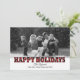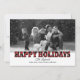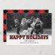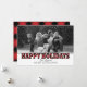 La moderna tarjeta de fotos "Happy Holidays" incluye un gran espacio para fotos y texto negro que se puede personalizar. Presenta un patrón rústico de manchas de búfalo rojas y negras en la parte delantera y trasera de la tarjeta con nieve falsa y filtro blanco y negro. <i>Fotografía © Storytree Studios, Stanford, CA</i>