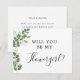 Tarjeta de niña de las flores de ramillete de eucalipto ¿Serás mi dama?