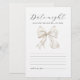 Esta tarjeta de inclusión de "noche de cita" para despedida de soltera presenta un diseño simple de lazo blanco perfecto para despedidas de soltera de "ella está atando el nudo".