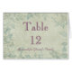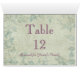 Hermosa tarjeta vintage floral de diseño de mesa de asiento número de plaza para su día especial. El texto se puede personalizar fácilmente para cualquier ocasión boda, ducha de bebé, aniversario, graduación, dulce dieciséis, cumpleaños u otro evento fiesta. La tarjeta de número de tabla está diseñada para que se gire hacia afuera de manera que el diseño sea visible desde ambos lados. También puede añadir nombres de invitados u otra información sobre asientos utilizando el menú "Personalizar It".