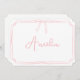 Tarjeta de nombre escrito a mano con lazo rosa est