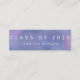 Tarjeta de nombre de graduación moderna con frente metalico oscuro en diferentes colores para que usted elija entre con la tipografía moderna "clase de" y un año combinado con su nombre en el medio. Parte posterior mantenga su información personal en el elegante sans serif font