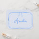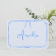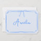 La tarjeta de nombre personalizado perfecta, también una excelente tarjeta para pedirle a tus damas de honor que te acompañen. Tiene un aire atemporal, caprichoso y coqueto, y cuenta con un lazo dibujado a mano adorable. El color azul la hace ideal para pedirle a tu equipo de 'algo azul' que sea tu 'algo azul'.