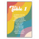 Decora tus mesas de boda con esta tarjeta moderna y elegante, que presenta un arcoíris divertido y texto personalizado a tu elección. Agrega fácilmente tus propios detalles haciendo clic en la opción "personalizar".