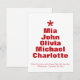Árbol de Navidad personalizado rojo y blanco nombres de familia tarjetas de felicitación personalizan con sus propios nombres familiares