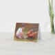 Esta tarjeta de nota ofrece una reproducción de mi pintura al óleo original de los pollos de alimentación de un chica.