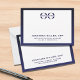 El diseño de la tarjeta de notas planas personalizado de doble cara presenta un diseño profesional simple y limpio con el logotipo de la empresa en la parte superior, el nombre, el título y la empresa en los tercios inferiores, enmarcado en azul marino. Tipografía clásica de bloques que se puede personalizar con su nombre, título, compañía o texto personalizado de su elección. El espacio para la nota manuscrita está incluido en la parte delantera y trasera.