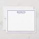 Tarjeta de nota azul marino oscuro y blanco. Incluye nombre, borde y parte posterior azul sólido.
