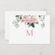 Este diseño presenta un ramo de hortensias florales rosa pálido botánico con un monograma clásico.