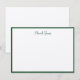 La tarjeta de nota con nombre personalizado se muestra en papel de tarjeta de fieltro ecru con un borde recortado de verde cazador.