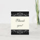 Tarjeta de nota de agradecimiento personalizada de boda con borde ornamental en negro y blanco, con un hermoso borde ornamental en negro y blanco con volutas sobre fondo marfil.