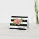 Elegante tarjeta de nota de agradecimiento de boda hecha en un patrón de rayas negras y blancas audaces, con un ramo de peonías coloridas y hermosas y texto negro que dice Gracias. Personalice el texto interior según sus necesidades. Están disponibles productos de boda a juego.