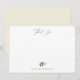 Elegante limones botánicos acuarelas, rama de hojas y flores, carta de nota personalizada. La tarjeta incluye caligrafía negra "Gracias" en la parte superior, línea de texto de plantilla para su nombre y respaldo de color beige bream.