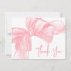 Este divertido y femenino diseño de tarjeta de nota presenta un gran lazo rosa de acuarela en el lado izquierdo, con cintas suaves coordinadas que fluyen a través de la parte superior y hacia abajo por el borde izquierdo para crear un marco dulce y elegante. La parte frontal de la tarjeta simplemente dice "Gracias" en elegante letra cursiva, creando una apariencia atemporal y elegante. En la parte posterior, el nombre está centrado a lo largo de la parte inferior en caligrafía de letra manuscrita rosa, lo que añade un toque delicado y personalizado mientras deja mucho espacio para su mensaje.