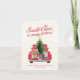 Tarjeta de nota de árbol y camión Santa Red Cute