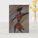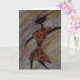 Esta tarjeta es una tarjeta de arte en blanco que presenta una pieza de medios mixtos hecha originalmente con tela, abalorios, lápices de acuarela y acrílicos.