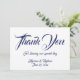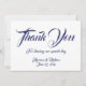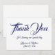 Elegante Script Personalizado Boda De Gracias Tarjeta. Personalizable de texto, nombres y fecha. Azul marino y blanco