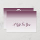 Tarjeta de nota de certificado de regalo morado y