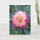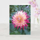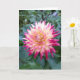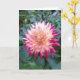 Esta impresionante foto de esta dahlia rosa muestra los pétalos puntiagudos en un fondo de hojas. Esta es una de mis dahlias favoritas. He dejado en blanco el interior de la tarjeta de nota para que escribas tu propio mensaje personal.