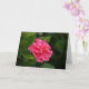 Mi fotografía original de una flor tropical hibiscus de bonito, pétalo doble y rosa profundo aparece en esta tarjeta de nota floral. Está floreciendo en medio de las hojas verdes oscuras de la planta. Esta tarjeta está en blanco dentro y se puede usar para cualquier ocasión y le da mucho espacio para escribir una carta sincera a cualquiera.