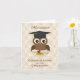 Tarjeta de nota de graduación de lechuza, mortero y diploma