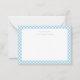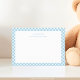 Tarjeta de nota de guardería de nombre de bebé de gingham azul moderno con un patrón de gingham en un color azul suave y fresco, personalízala con el nombre del bebé y el texto personalizado de "nota de". Un diseño simple, moderno y elegante con una combinación de tipografía y caligrafía. Tarjeta de diseño minimalista para la papelería de tu bebé.