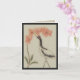Una grúa que chilla amplía su cuello hacia arriba para alcanzar una orquídea de gran tamaño en el diseño Asiático-inspirado en esta tarjeta de nota. La grúa se marca con negro en su cuello y alas y con rojo en su cara y cabeza. La orquídea del phalaenopsis es naranja pálido con las hojas de color verde oscuro en la base de su tronco de formación de arcos. El fondo beige profundo y el aspecto apenado dan a imagen la mirada de una pintura antigua en el papel que se ha descolorado a lo largo de tiempo. De mi imagen digital creada de la original.