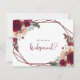 Esta tarjeta geométrica de la dama de honor burdeos es perfecta para un boda rústico. El diseño está decorado con flores borgoñas, de color rosa y con hojas verdes, que inspiran la belleza artística. Cambia la redacción y usa estas tarjetas para preguntar a todos los miembros de tu fiesta nupcial; criada de honor, matrona de honor, dama de honor, dama de honor, chica de flores, mejor hombre, padrinos y más!