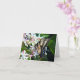 Hermosa tarjeta de notas de ocasión para mariposa de cola de toro de tigre con flores de color rosa y crema sobre fondo verde.