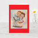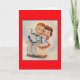Tarjeta de nota antigua/retro. ¡Adorable joven tratando de poner un delantal sobre un joven sorprendido! ¡Perfecto para cualquier ocasión!