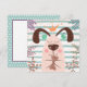 Una tarjeta de nota plana linda con espacio para mensaje en la parte posterior. Perro de dibujos animados divertido.