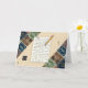 Esta tarjeta de notas de sellos incluye sellos y artículos de escritorio. La tarjeta está en blanco dentro para su propia nota personal o carta.