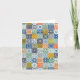 Esta tarjeta tiene un panel de mosaicos de tela de mobiliario vintage que parece un edredón.