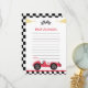 Tarjeta de nota del cápsula de tiempo de la fiesta de cumpleaños de coche de carreras
